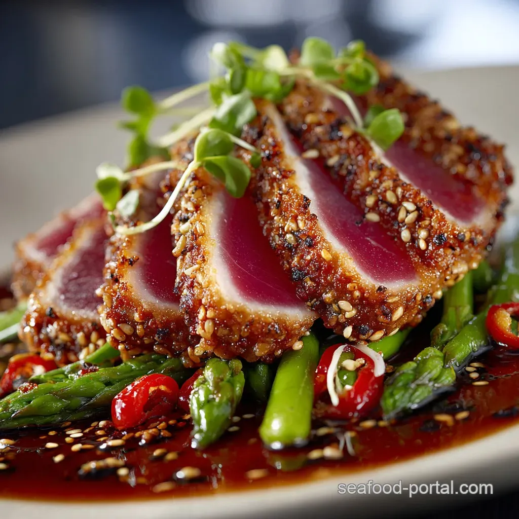 The Speedy Seafarer Sesamecrusted Ahi Tuna Steaks with Soyginger Drizzle