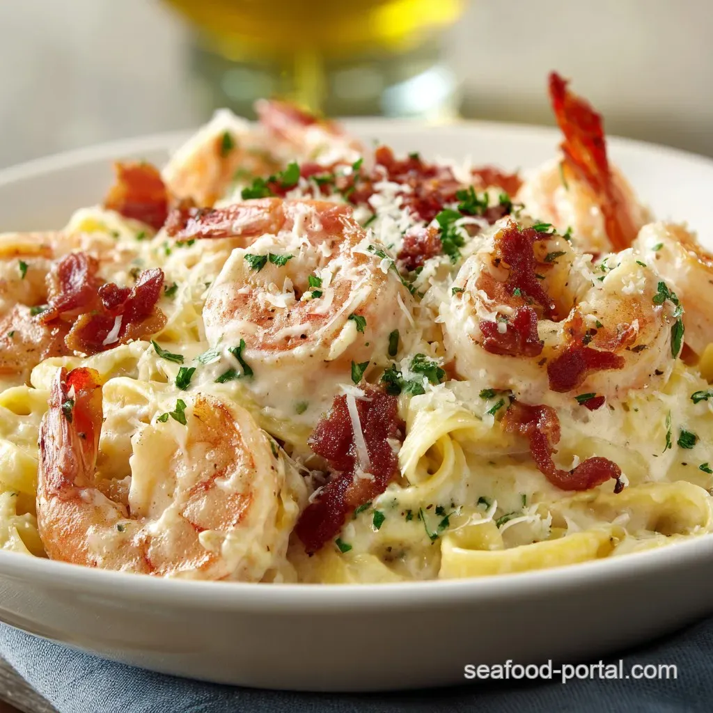 - Flavor/Texture Hook: Velvety cream sauce with smoky bacon notes and snappy seafood