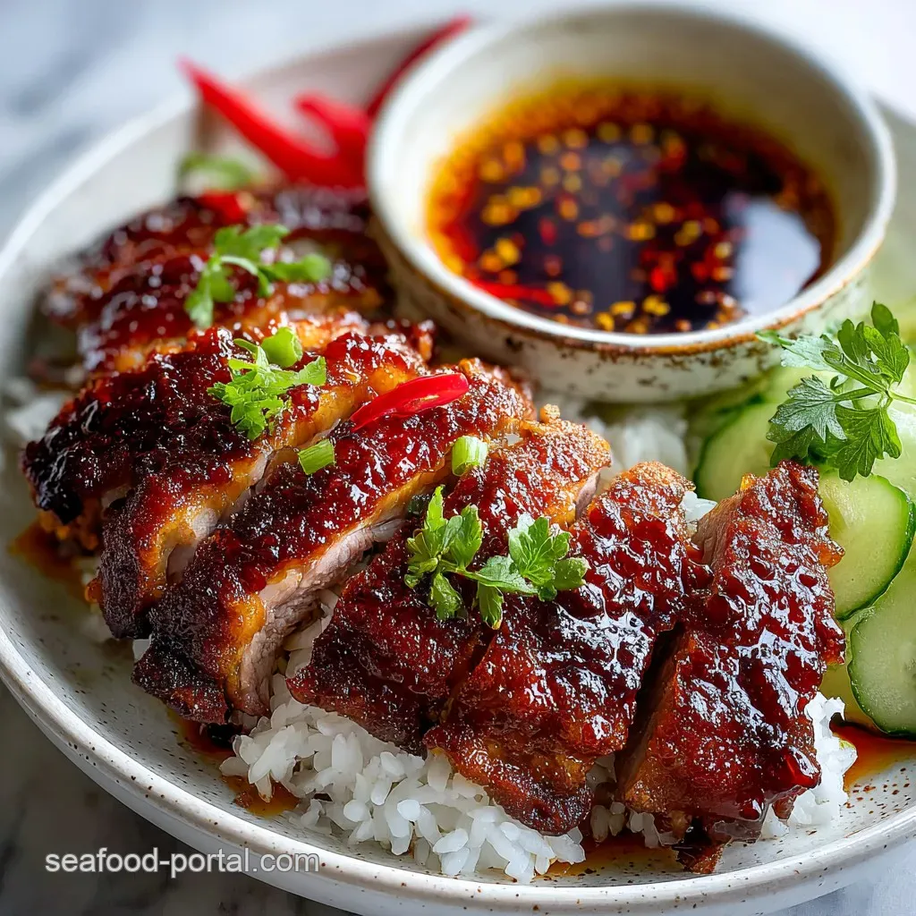 - Flavor/Texture Hook: Shatter crisp skin meets a sticky, lacquered honey hoisin glaze.