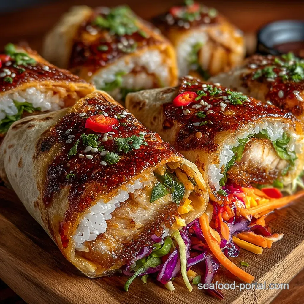 If you crave heat, add a small amount of Sriracha directly into the protein marinade. Alternatively, for a sharper, more authentic kick, serve your finished Sushi Burritos with a dollop of high-quality wasabi paste on the side, allowing each person to customize their bite without overwhelming the delicate flavour profile of the fish or rice.