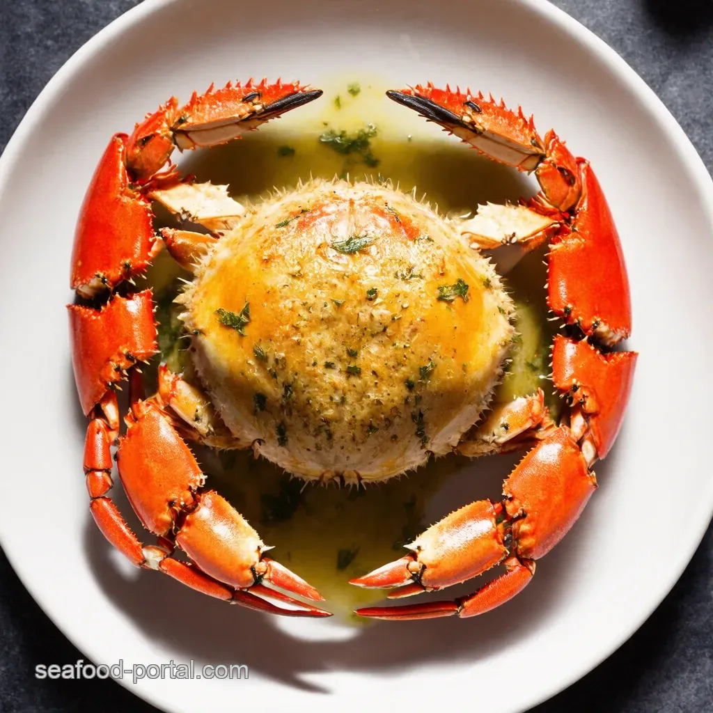 Ovenroasted Dungeness Crab with Garlic Herb Butter