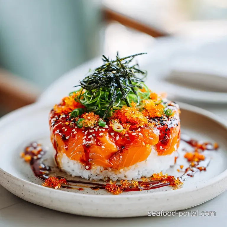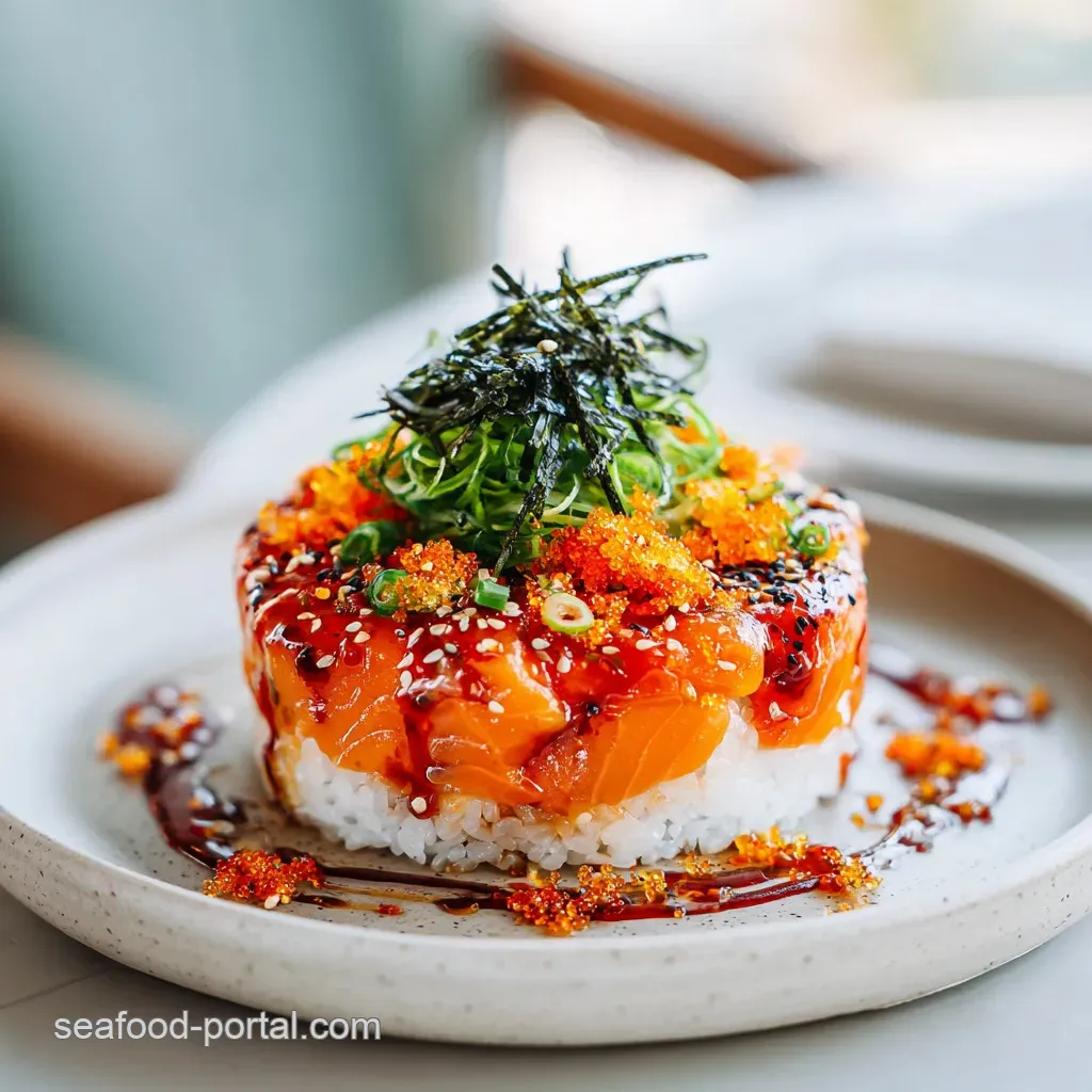 - Flavor/Texture Hook: A velvety, spicy salmon layer over chewy, vinegared rice with a shattering nori crunch.