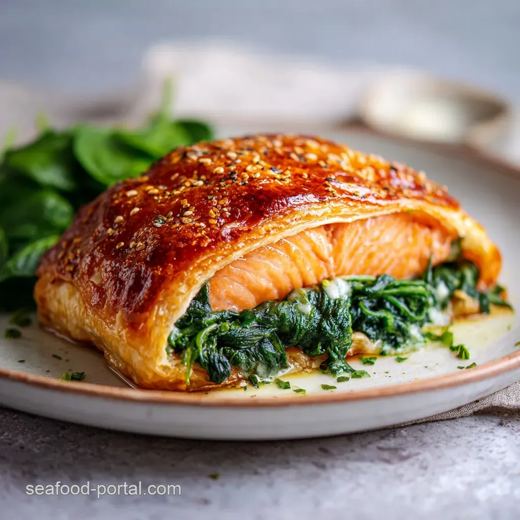 Salmon Wellington with Spinach: Golden Crust